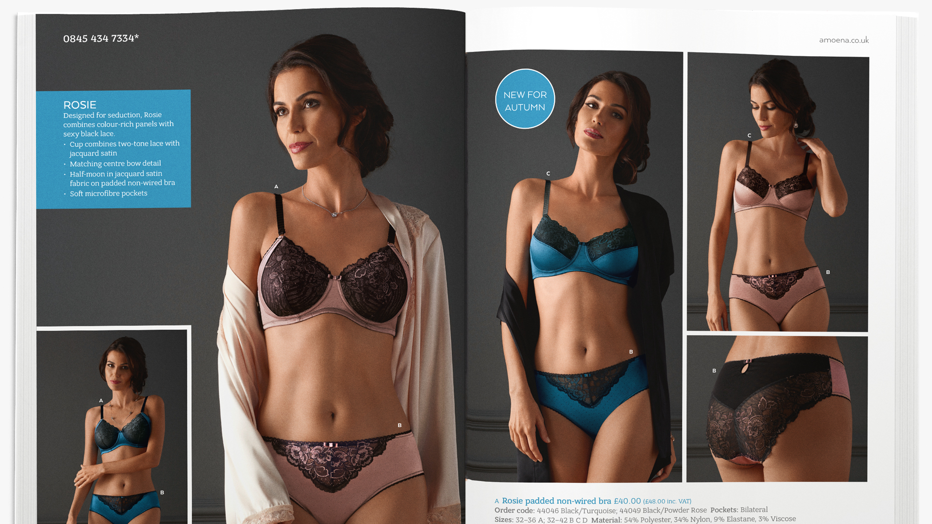Amoena is the world’s leading brand of post-mastectomy swimwear, lingerie, clothing and accessories for women who have undergone treatment for breast cancer. We have been working together for many years, and through a number of evolutions to their brand, from their annual magazine (art directing photo shoots… that’s David in the hat) to their mail order catalogues and product brochures.